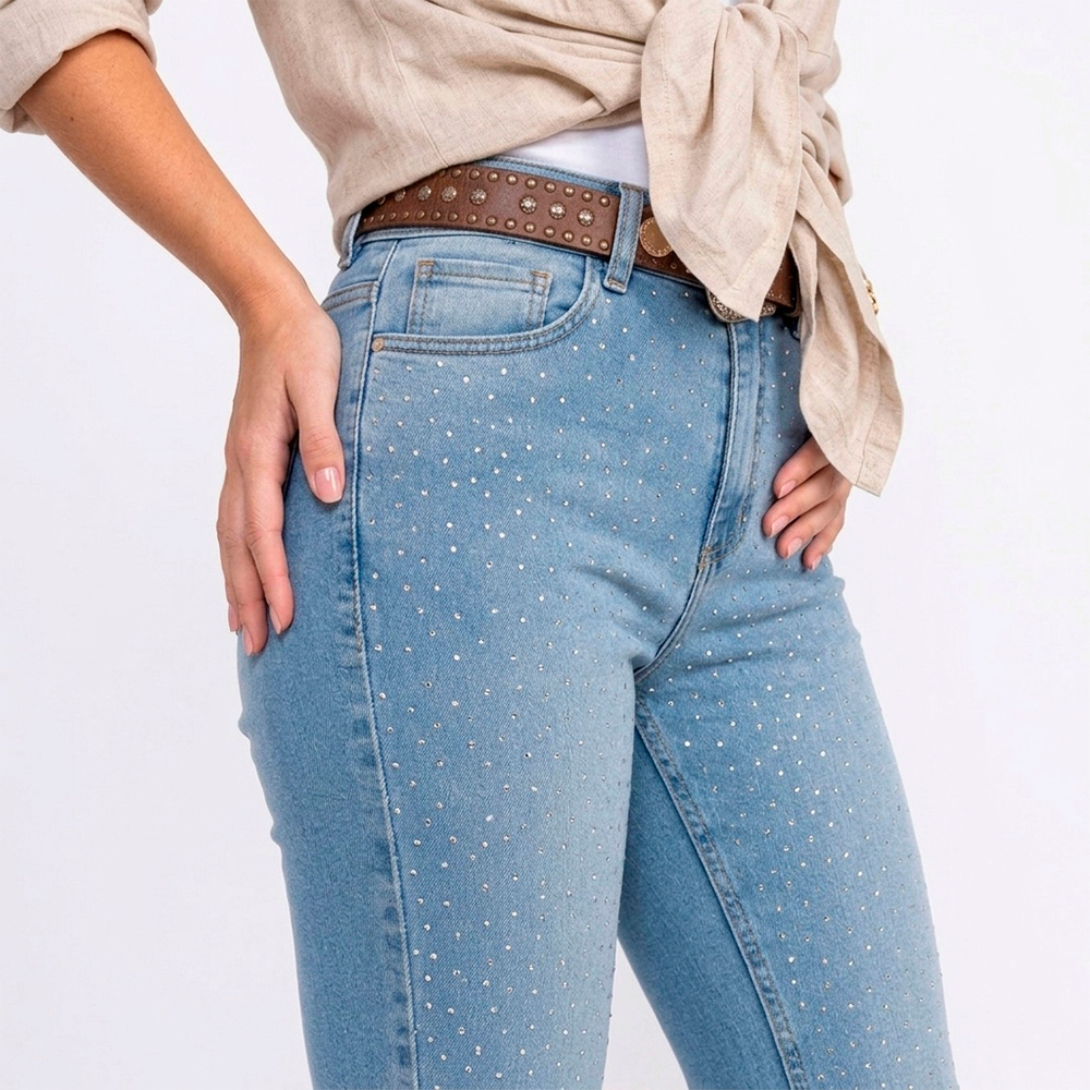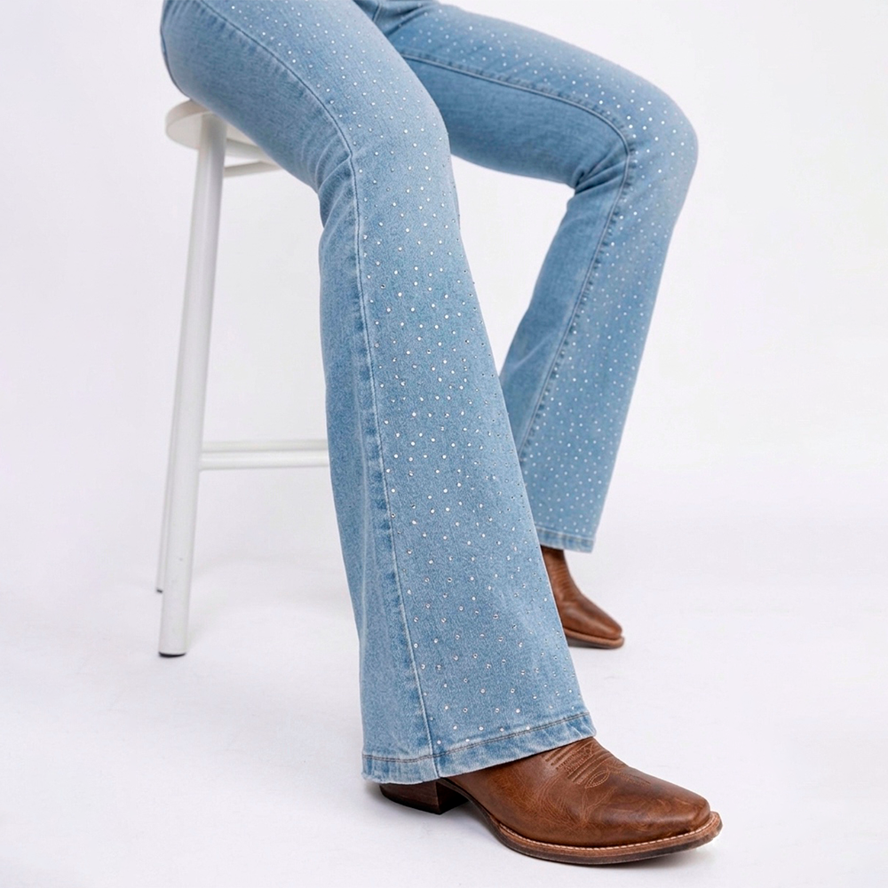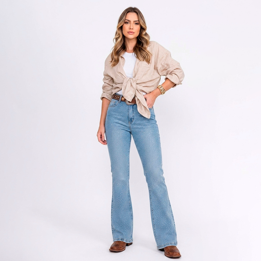 CALÇA FLARE JEANS 875 COM STRASS