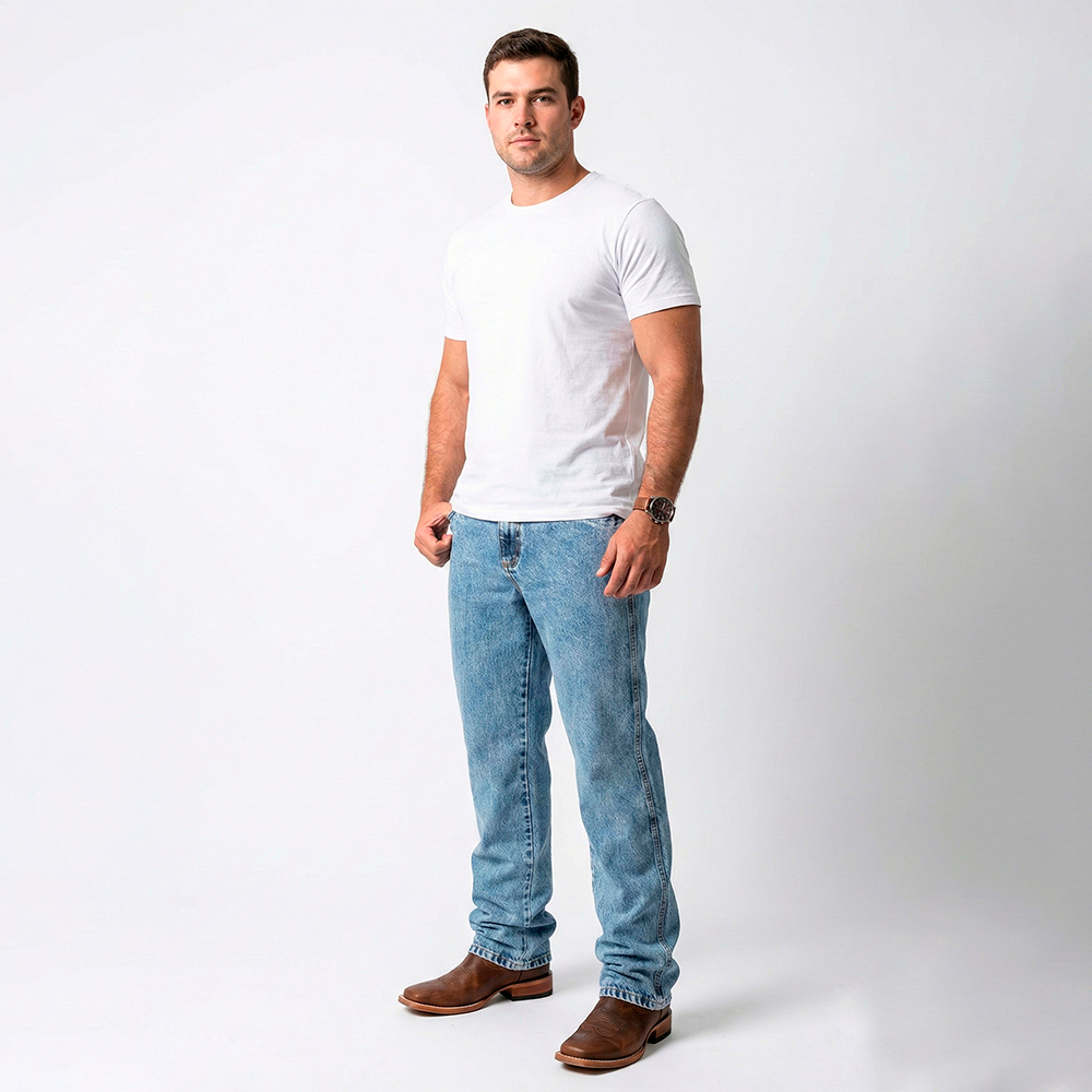 Essa calça jeans country bootcut masculina é perfeita para quem valoriza o estilo western autêntico, com um visual robusto e acabamento de qualidade. Uma peça indispensável no guarda-roupa de quem vive o country no dia a dia.