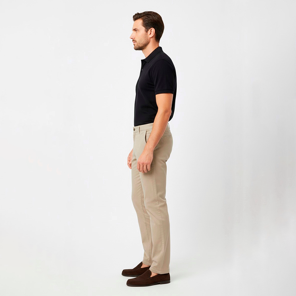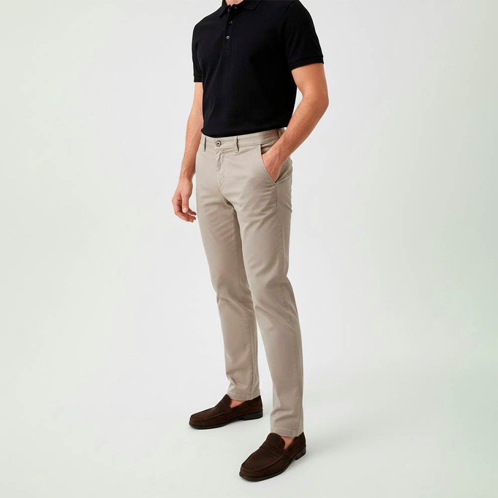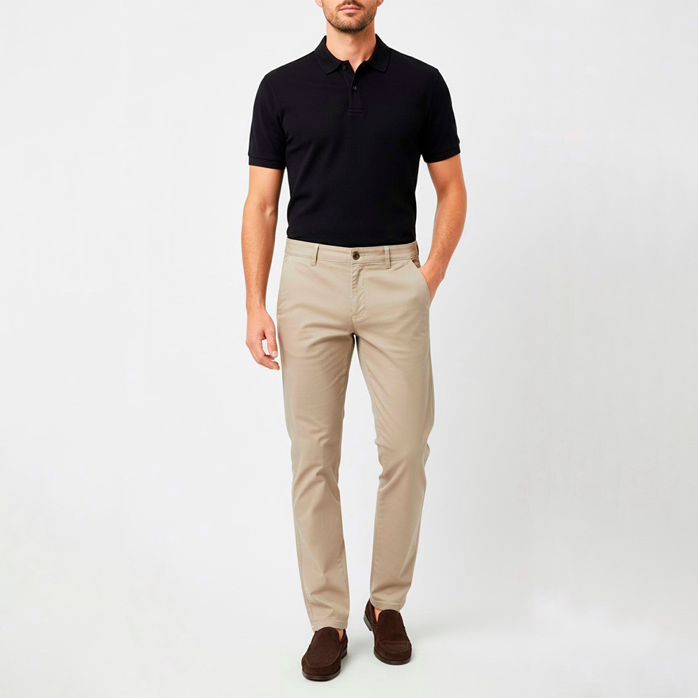 Com modelagem de caimento ajustado, a calça valoriza a silhueta masculina sem limitar os movimentos, garantindo conforto durante todo o uso. A cor areia é neutra e moderna, facilitando combinações com camisas, polos ou camisetas, sendo perfeita para ambientes de trabalho, eventos sociais ou compromissos do dia a dia.
