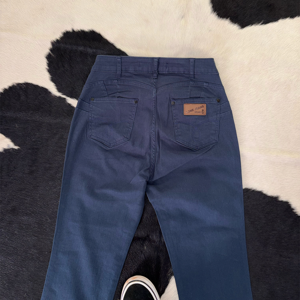 Na cor azul, essa calça country combina facilmente com botas, cintos e peças em couro, sendo ideal para rodeios, festas agro, eventos sertanejos ou para compor um look casual sofisticado no dia a dia.
