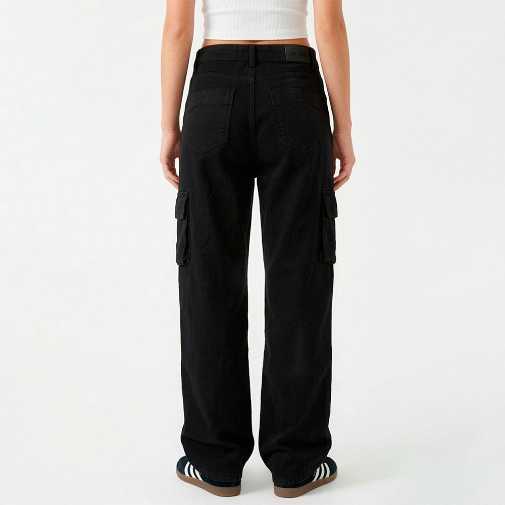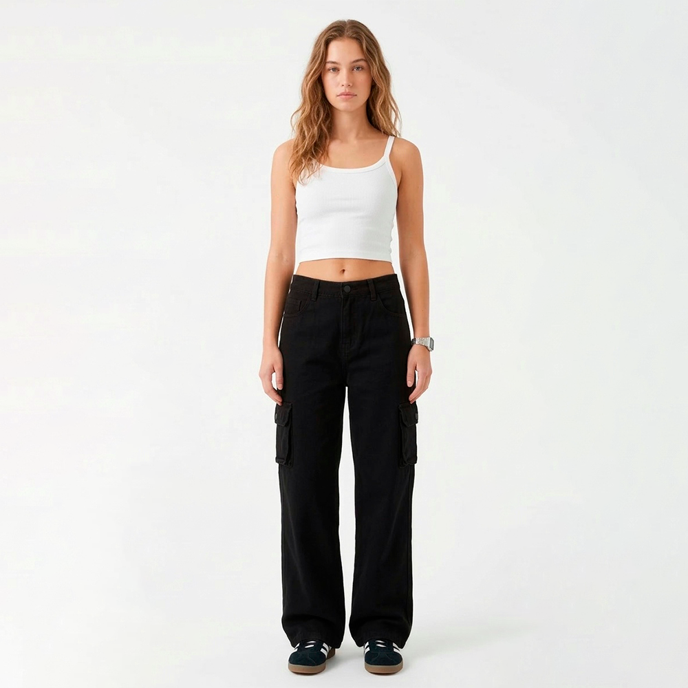 A cor preta é um clássico indispensável, fácil de combinar com diferentes peças — desde looks casuais com tênis até produções mais sofisticadas. Ideal para quem procura uma calça cargo feminina confortável, estilosa e versátil.